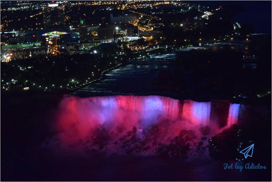 Las Cataratas del Niágara se iluminan cada noche al caer el sol con cientos de luces LED realzando aún más su belleza.