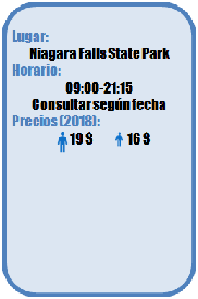 - Entrada Combo: permite el acceso ala plataforma de observación y la visualización de la película en 4D Legends of Niagara Falls.
