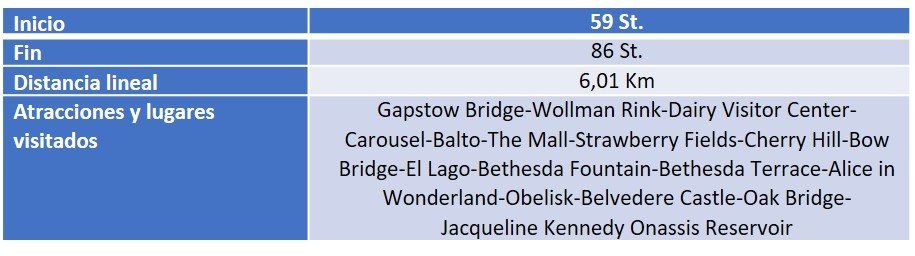 ¡Este itinerario a pie por Central Park acaba aquí! Pudiendo salir del parque por el oeste, a la altura de la calle 86 St., o por el este donde, a esa altura, se encuentra el famoso museo MET.