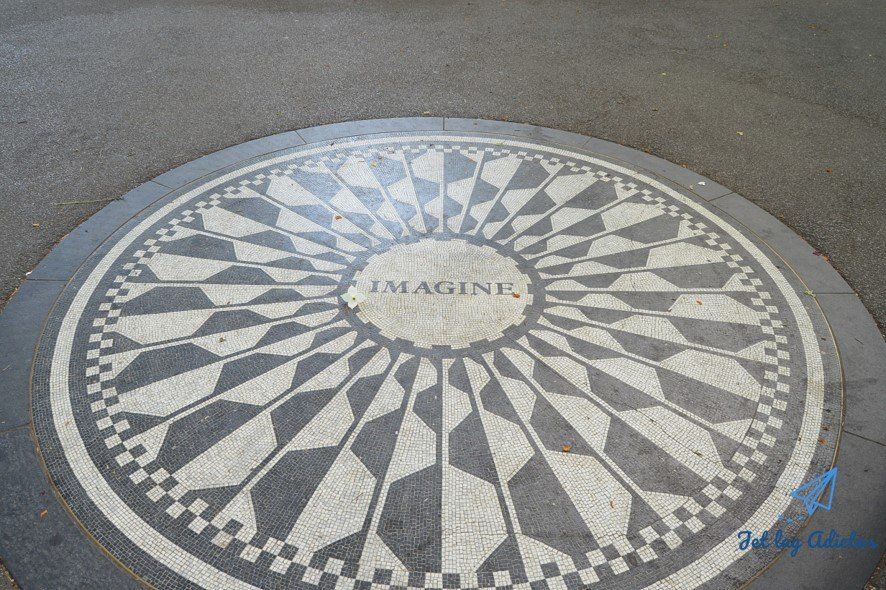 Seguirás el paseo hasta aproximadamente su cruce imaginario con la calle 70 St., donde tomarás dirección oeste hasta alcanzar West Dr. para alcanzar la siguiente parada de la ruta, Strawberry Fields… Los Strawberry Fields son un prado, pero en el suelo hay un famoso mosaico con la palabra Imagine, el homenaje a John Lennon en Central Park y donde suele haber músicos tocando canciones de The Beatles. Al fondo, podrás ver el Edificio Dakota, frente al que el músico murió asesinado.