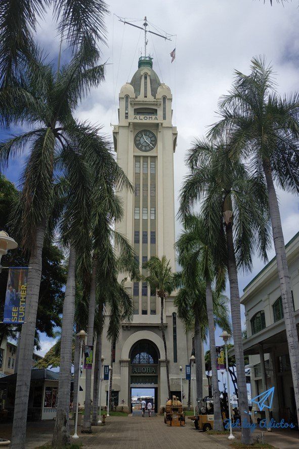 Construida en 1926, la Aloha Tower se construyó como faro de bienvenida para los visitantes ya que, en esos años, el viaje hasta Oahu se realizaba exclusivamente por mar; y se convirtió rápidamente en un símbolo icónico de Hawái siendo, además, el edificio más alto de la isla durante cuatro décadas y, su reloj, uno de los más grandes de Estados Unidos.