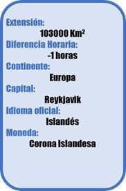 Islandia es un país insular cuyo territorio abarca la isla homónima y algunas pequeñas islas e islotes adyacentes en el Océano Atlántico. Islandia se divide en 8 regiones... Su capital es Reykjavik…