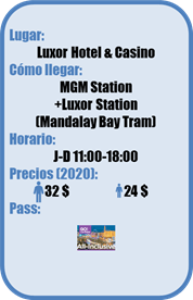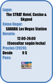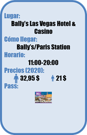 Uno de los PASS de Las Vegas incluye esta atracción, permitiéndote el acceso a la atracción el día que desees; simplemente tienes que presentarte en la taquilla de entradas con la tarjeta PASS.