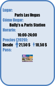 Son varios los PASS de Las Vegas que incluyen esta atracción: los mismos permiten la entrada a la Eiffel Tower Viewing Deck el día que desees; simplemente tienes que presentarte en la taquilla de entradas del edificio con la tarjeta PASS antes de las 5 de la tarde.