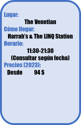 Uno de los PASS de Las Vegas incluye esta atracción y permite el acceso al espectáculo el día que desees; simplemente tienes que hacer una reserva con el día y hora de tu elección.