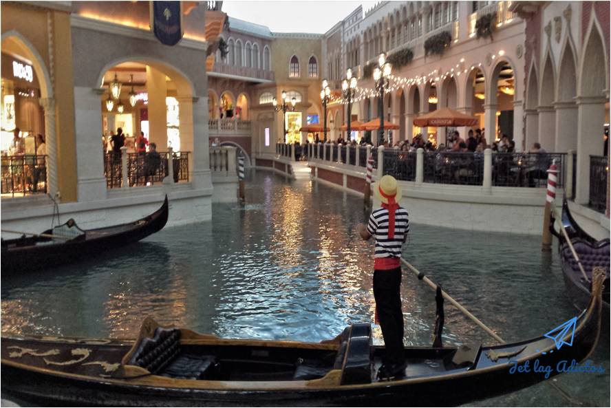 En The Venetian tendrás la suerte de poder tomar un paseo por el centro comercial Gran Canal Shops, que comunica con el interior del hotel, atravesando el paisaje veneciano mientras tu gondolero canta ‘O Sole Mio’ o tomar un paseo al aire libre por el exterior del hotel.